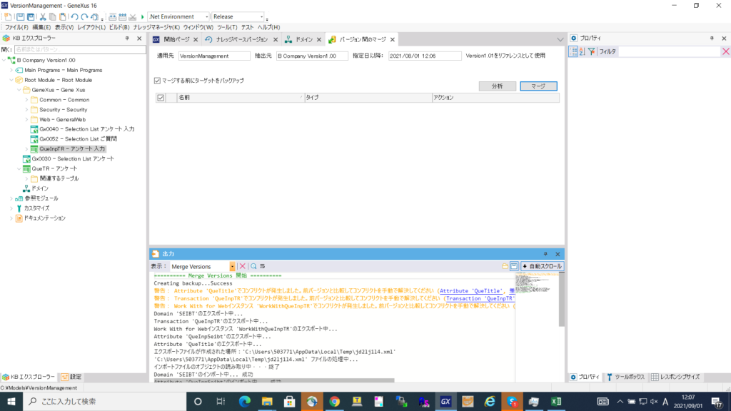 パッケージソフトウェア等で派生バージョンを管理する場合でもGeneXusの差分管理及びマージ機能が有効に使えることが分かりますね。