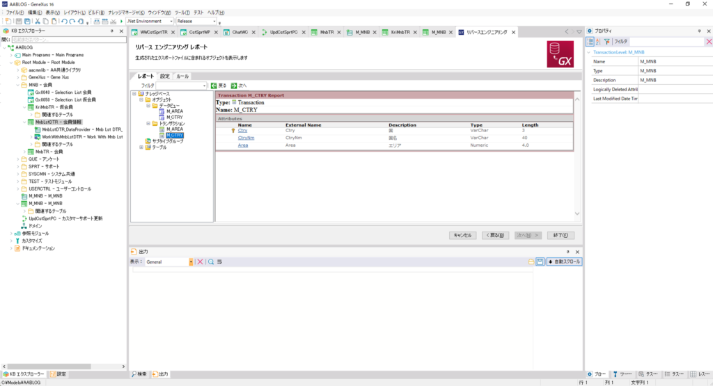 取込完了後、DBリバースで自動生成されたCTRYトランザクションを参照すると以下の様にAREAトランザクションと親子関係として認識されていることが確認できます。